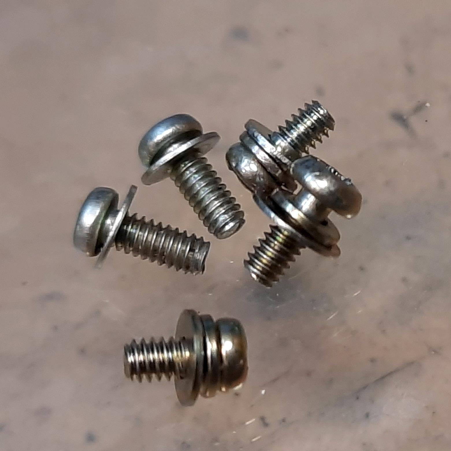 Сходил до лабораторий, выкрутил два вида винтов, в обоих случаях шайбы не снимаются, то есть они как-то обжаты на винте, зафоткал еще раз :)