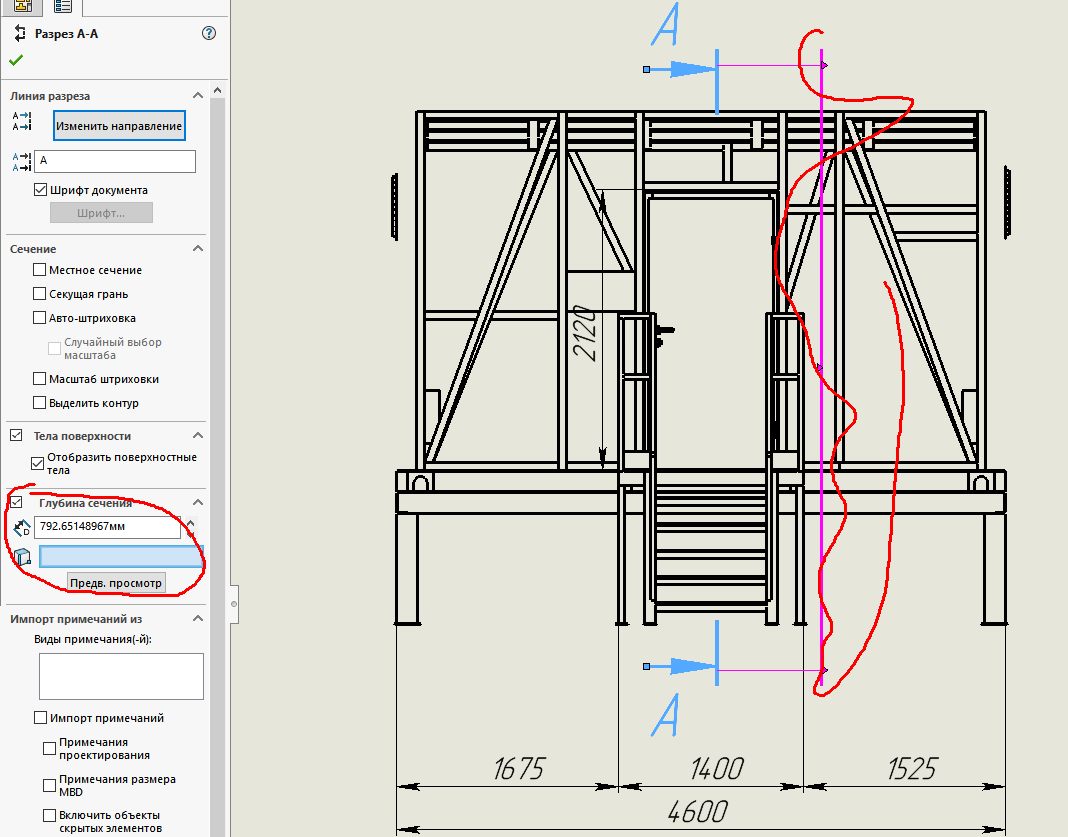Используйте для разрезов галку "Глубина сечения"