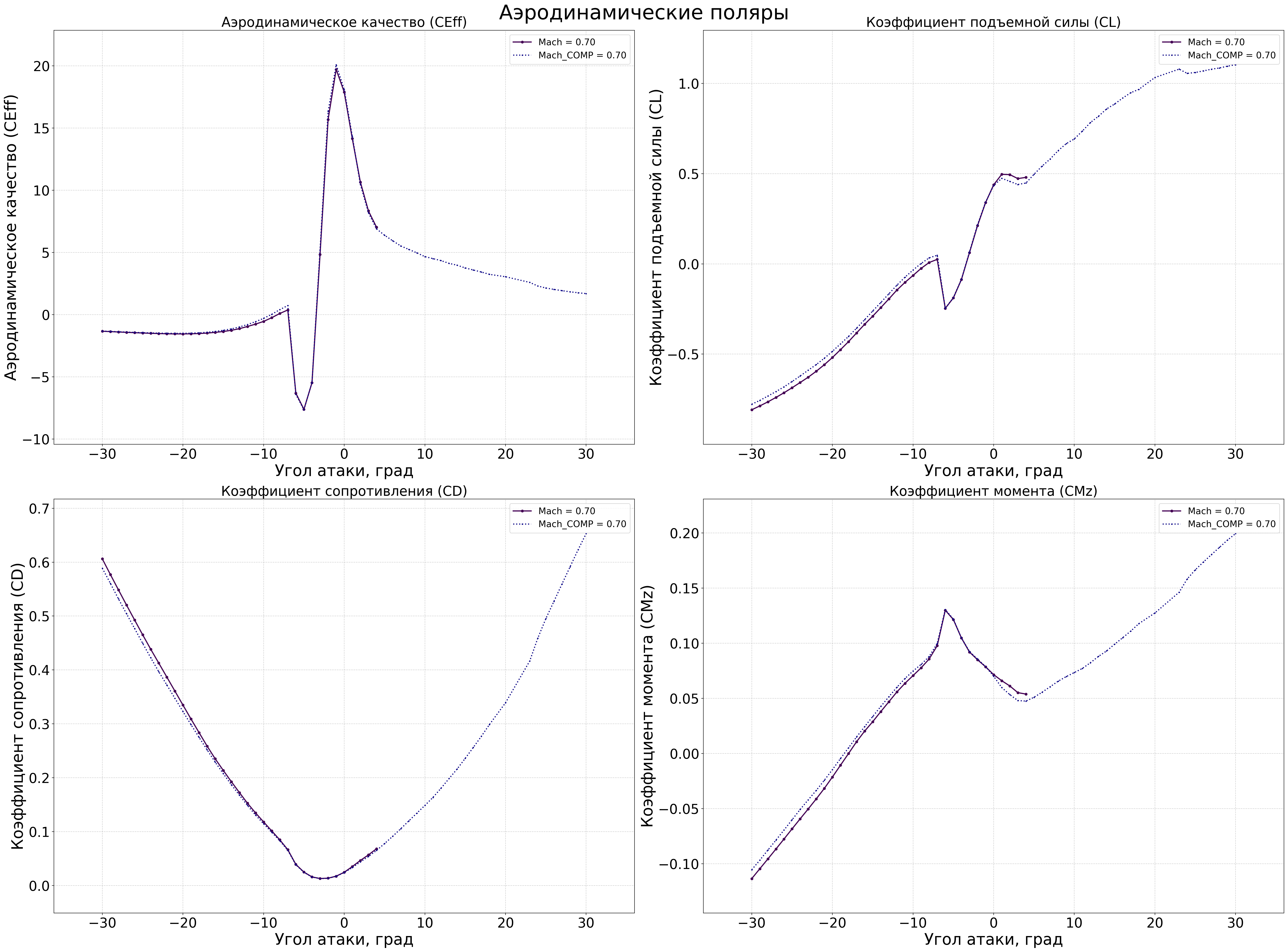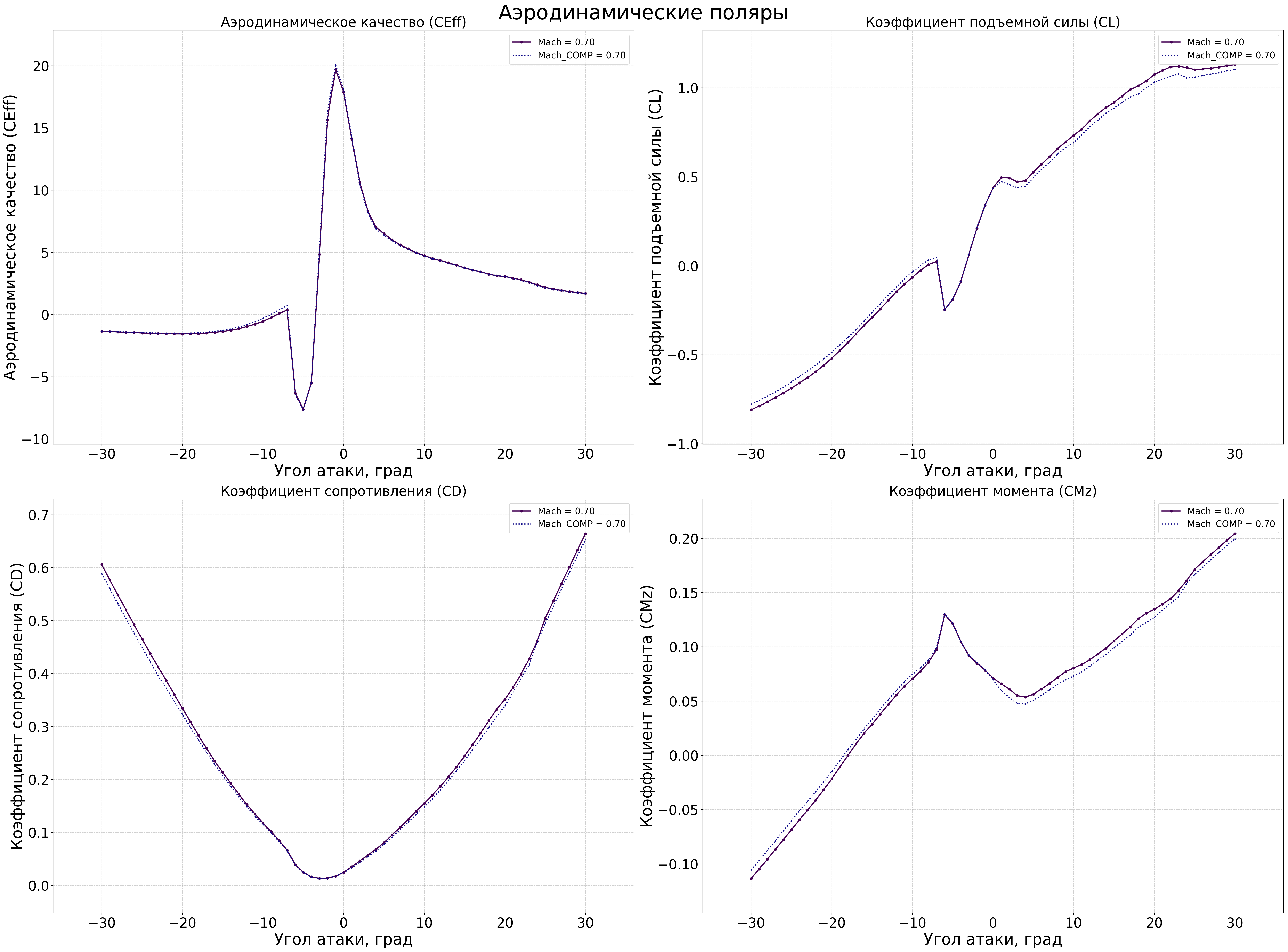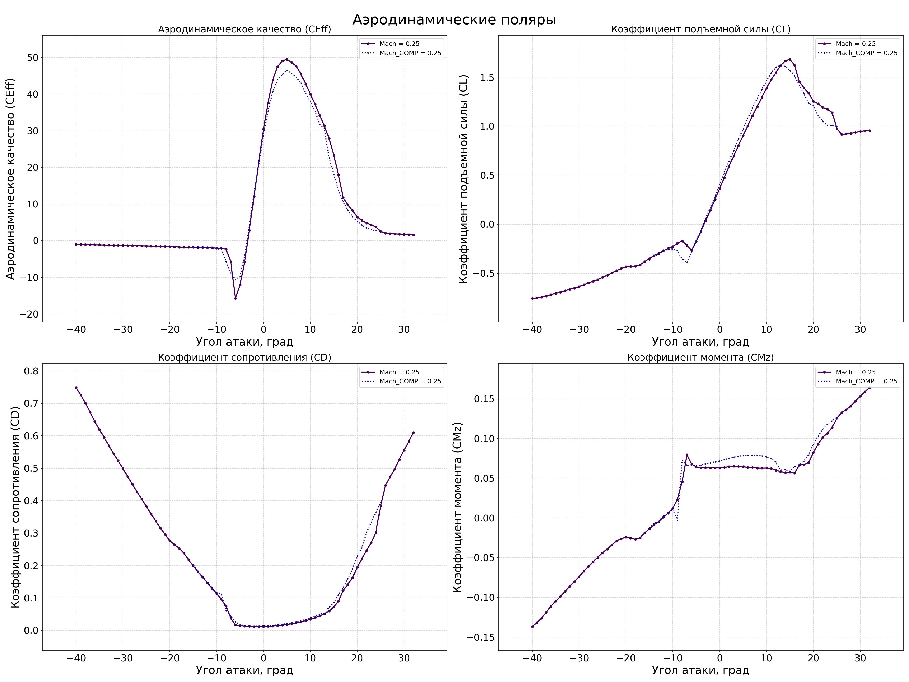 Так же настройки чутка подкалиброваны для приближения чисел к реальности. По сравнительной картинке видно - проблемные участки новая версия просчитывает куда достовернее. Также видны последствия применения HLLC в старой версии - новая прорисовала поляру как бы "острее".