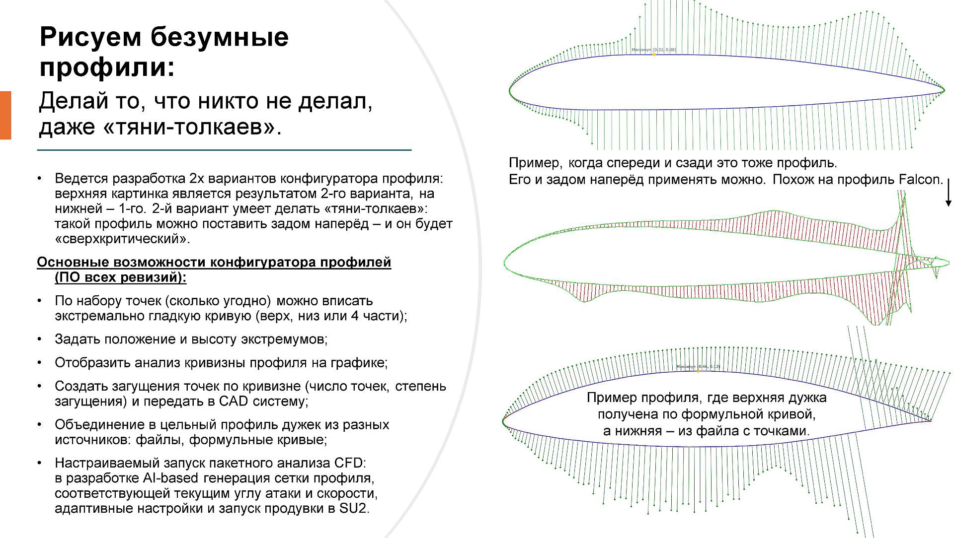 И тут я вынес всё это на форум, где меня сразу задрали, из-за чего для подтверждения "туннельного эффекта" я запилил безо всякой помощи (прям, все как-то "по-Туртински" -только вредили) весь этот софт, включая последний писк - 2-е поколение конфигуратора дужки профиля и весь этот ИИ-CFD. И фреймворк для работы с профилями, я постил возможности: