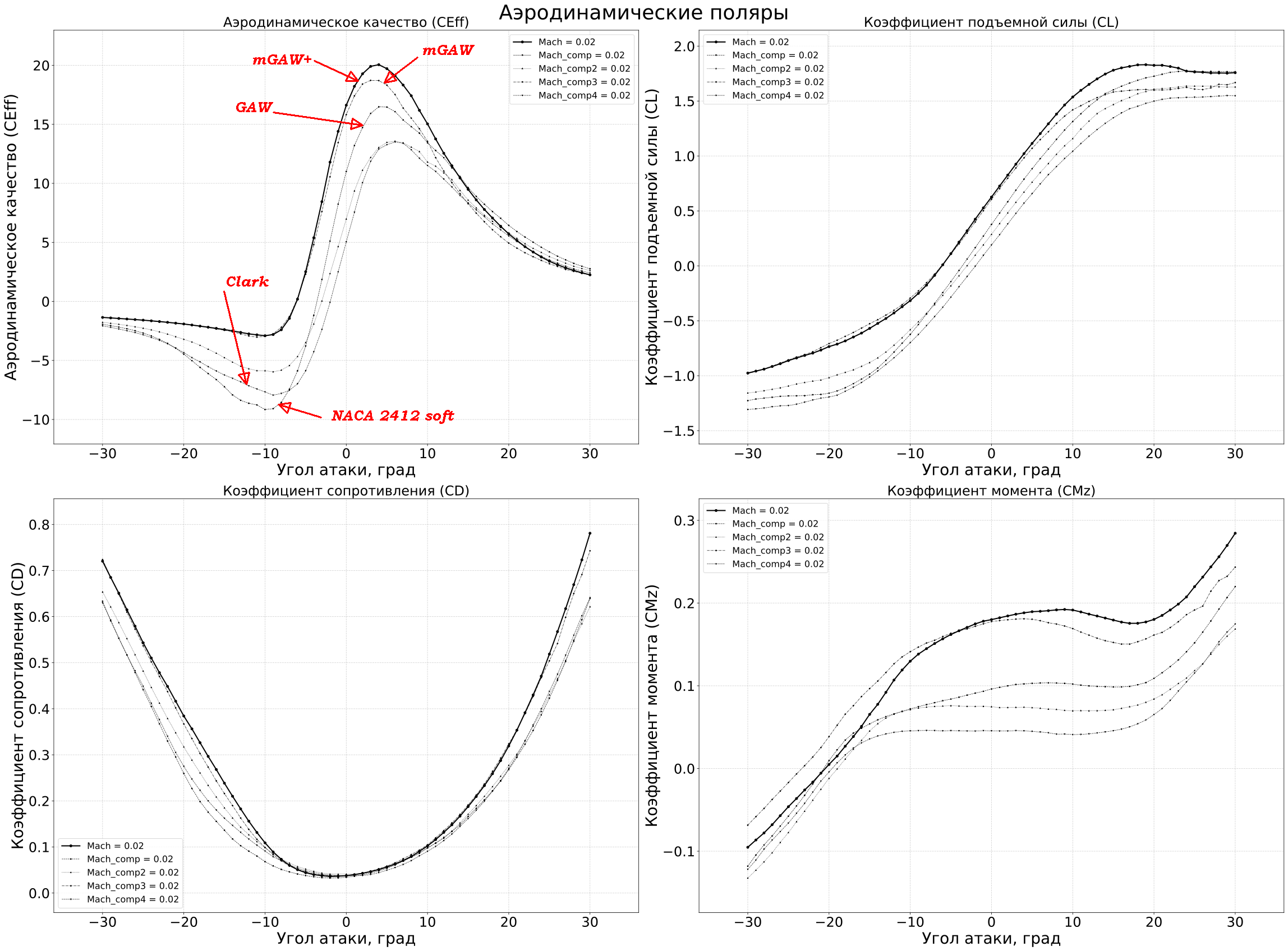 Добавил NACA 2412 и пока - топ на текущий момент - упомянутый мод mGAW+. Кстати - веду доработку программы отрисовки для выгрузки поляр в редактируемый вариант. Чтобы раскрашивать, легенды менять и прочее.