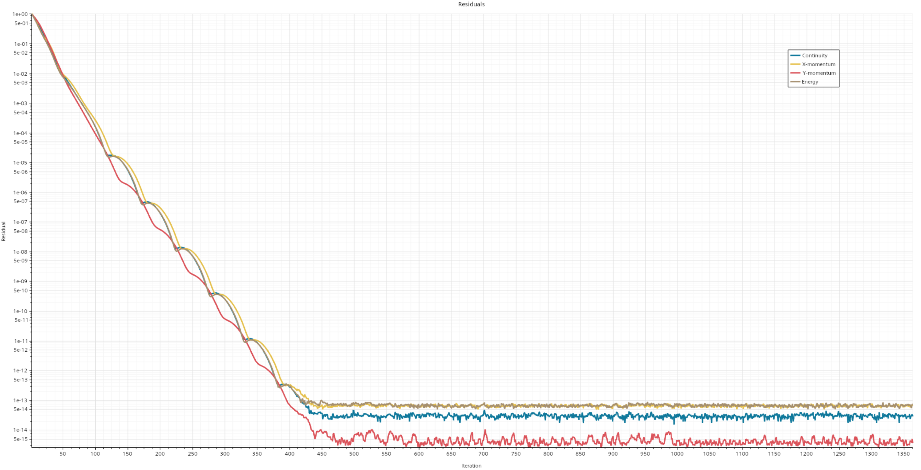 На вашей сетке из картинки расчёт вообще вряд ли запустится, будет NaN или дивергент. Или расходимость, когда расчёт застрянет в прыжках между значениями с низким RMS_DENSITY,. Или он будет ниже 3-х, если сойдётся. По форуму CFD в ветках SU2 пишут, расчёту можно начинать доверять, если RMS_DENSITY>6.
