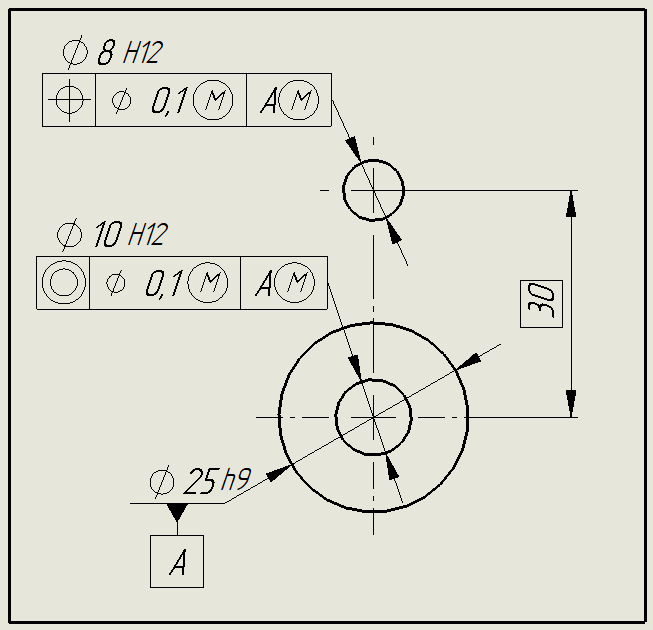 2. Вопрос второй зависимые допуски просмотрел кучу видео ни кто нормально разъяснить не может и в терменологии максимума и минимума материала смотрел ролиики и в терменологии зависимих допусков, такое ощущение что люди сами до конца не понимают. Вот чертеж.
