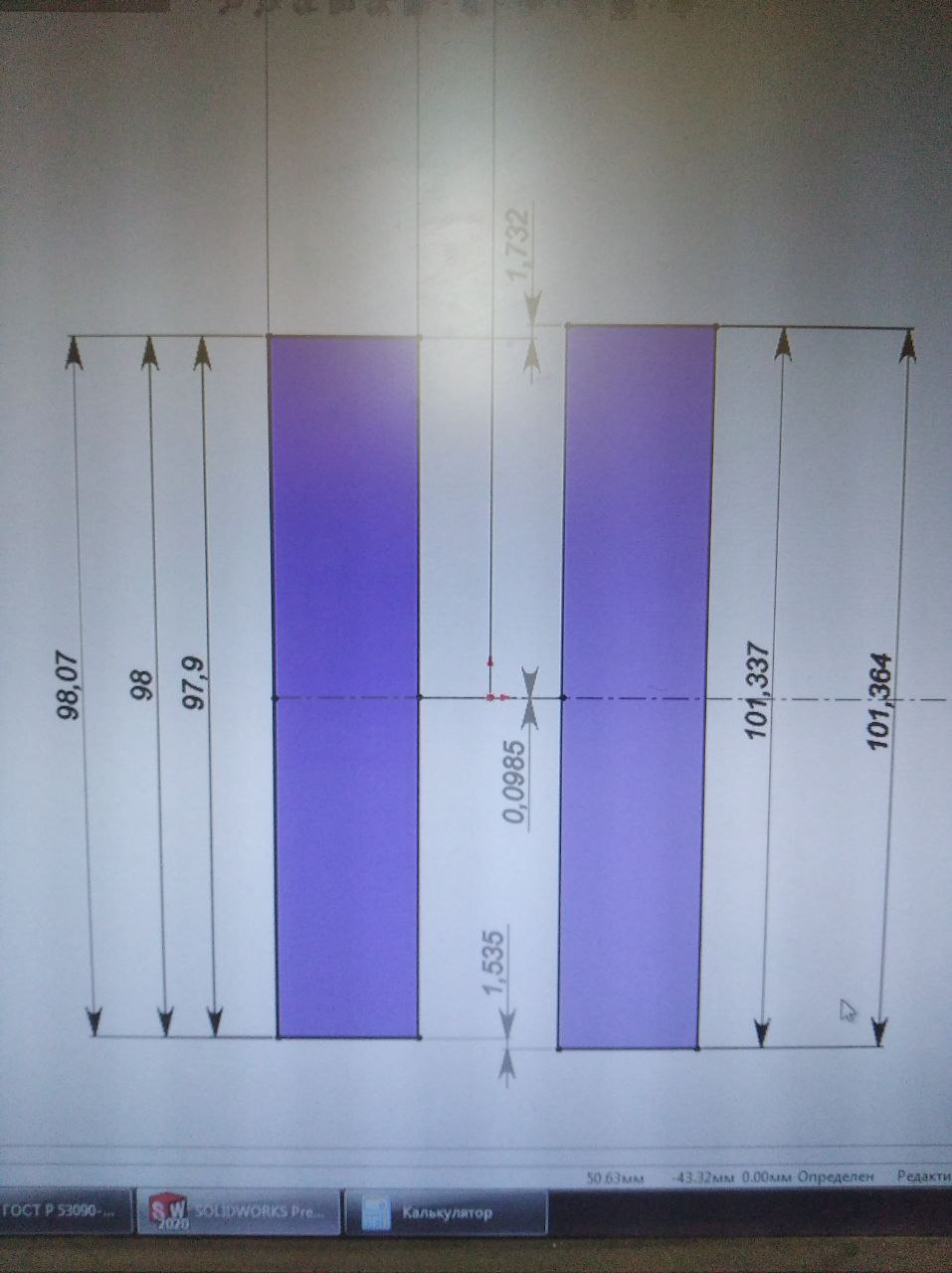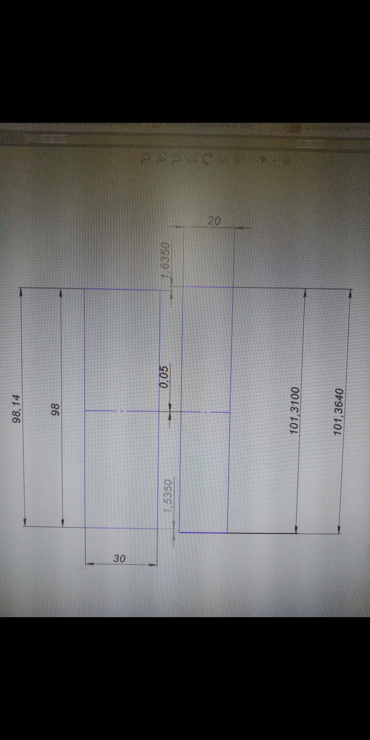 @Stanislav Если действительный размер диаметра Ф98H10 равен минимальному значению 98 мм, а размер базового диаметра Ф101,4f8 максимальному - 101,364 мм, то минимальная толщина стенки равна 1,632 мм