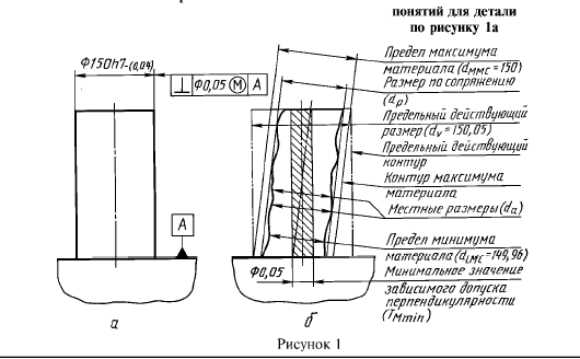 Но в этом госте есть такая картинка, и следующая в другом госте. Подумал что обратное, перпендикулярность плоскости к цилиндрической поверхности тоже справедливо.  Особенно такой вывод напрашивается из 2ой картинки когда вал выполнен в середину поля допуска и может наклониться до действительного значения максимума материала.