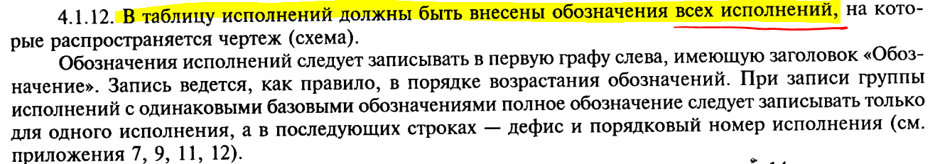 Или у вас единичными докум оформлены схемы и перечни, тогда в спецификации будет вот так. А в каждой схеме в таблице исполнений указаны те исполнения на которые распространяется каждая схема.