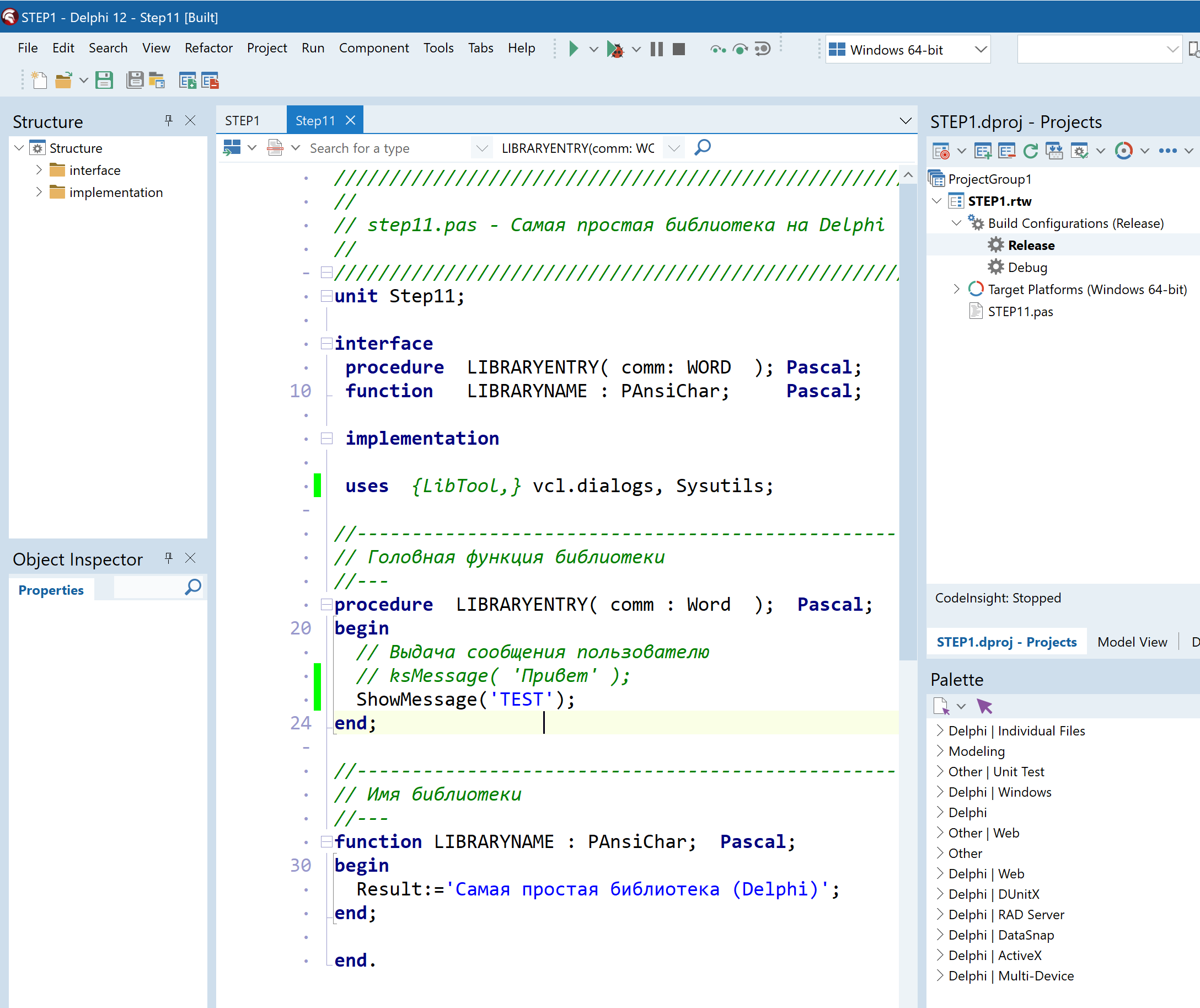 Ну вот например. Тут даже ничего компасовского нет. Компилирую. Копирую в lib. Добавляю. ничего не происходит. Как dll без LibraryEntry подключать.