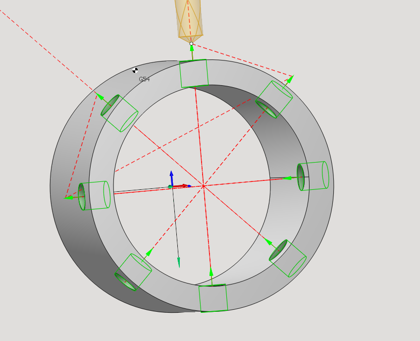 Нужно просверлить отверстия поворачивая стол по оси B, однако спрут при пересчете операции сам меняет векторы отверстий это так и должно быть или я что-то делаю не так?