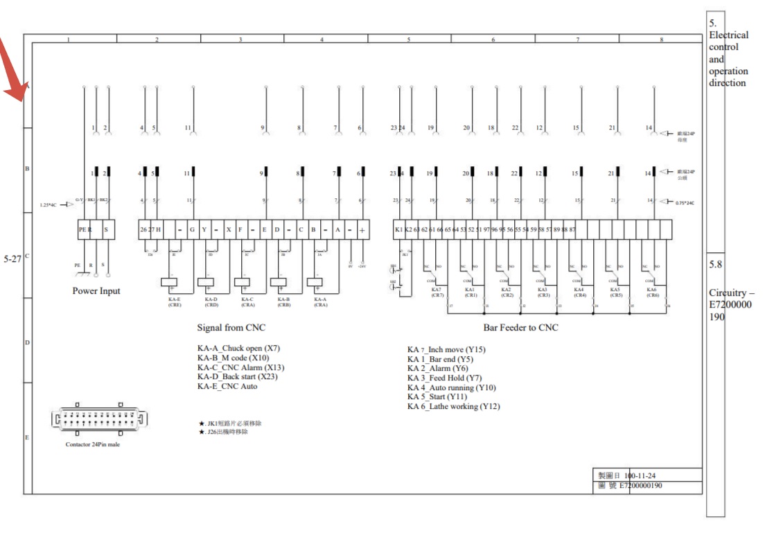 Подключено через 24 пиновый разъем на станке(интерфейс податчика прутка).