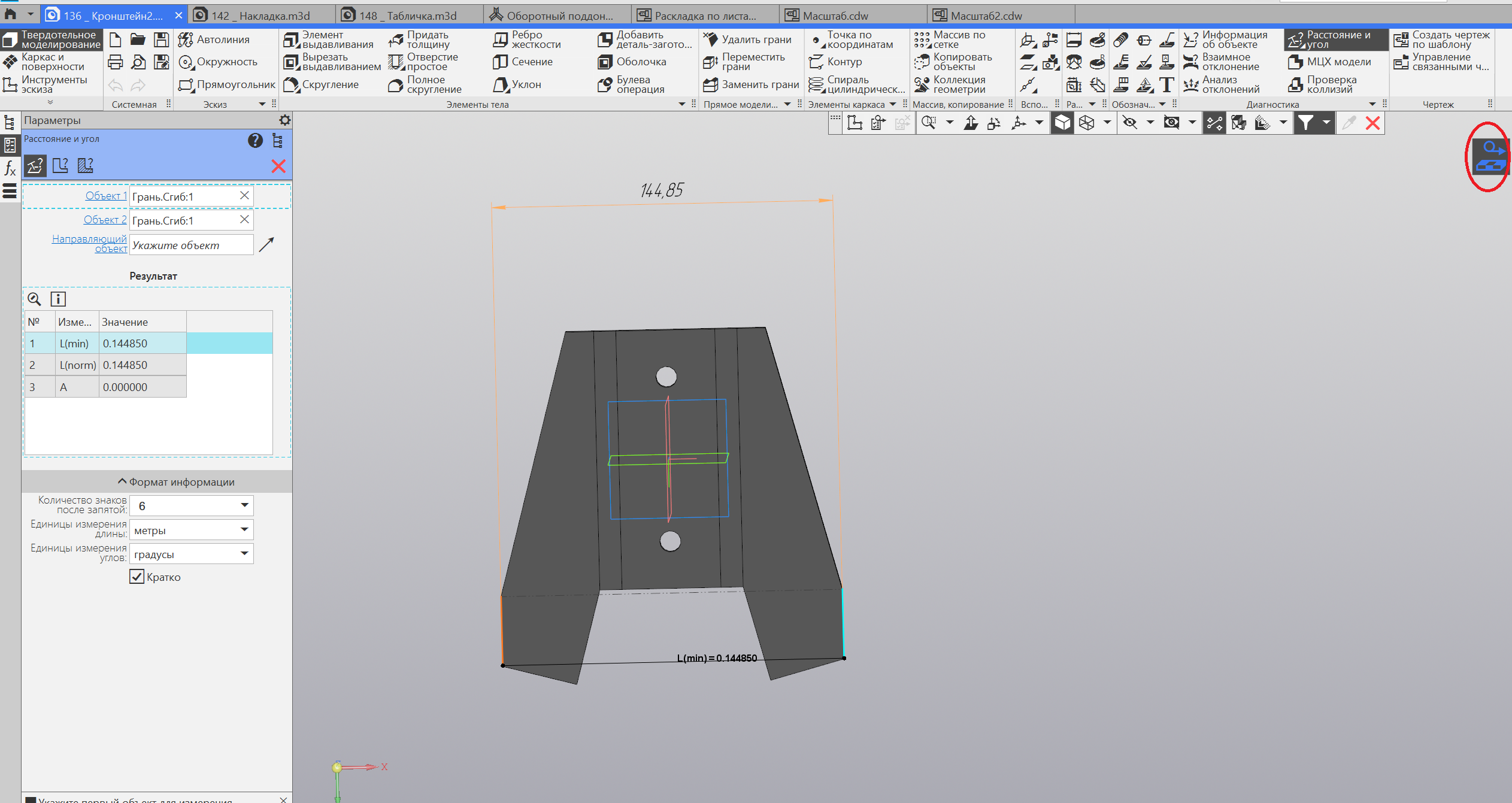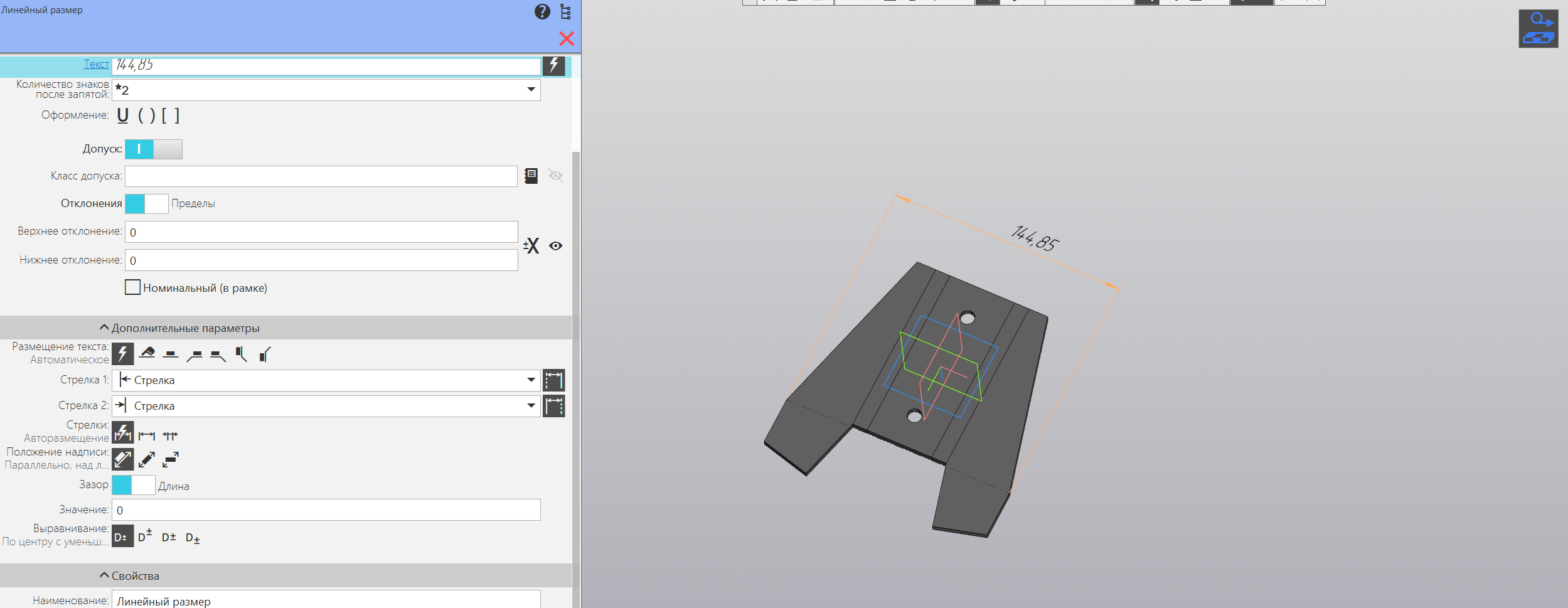 Линейный размер на изображении выше не отображается в переменных.