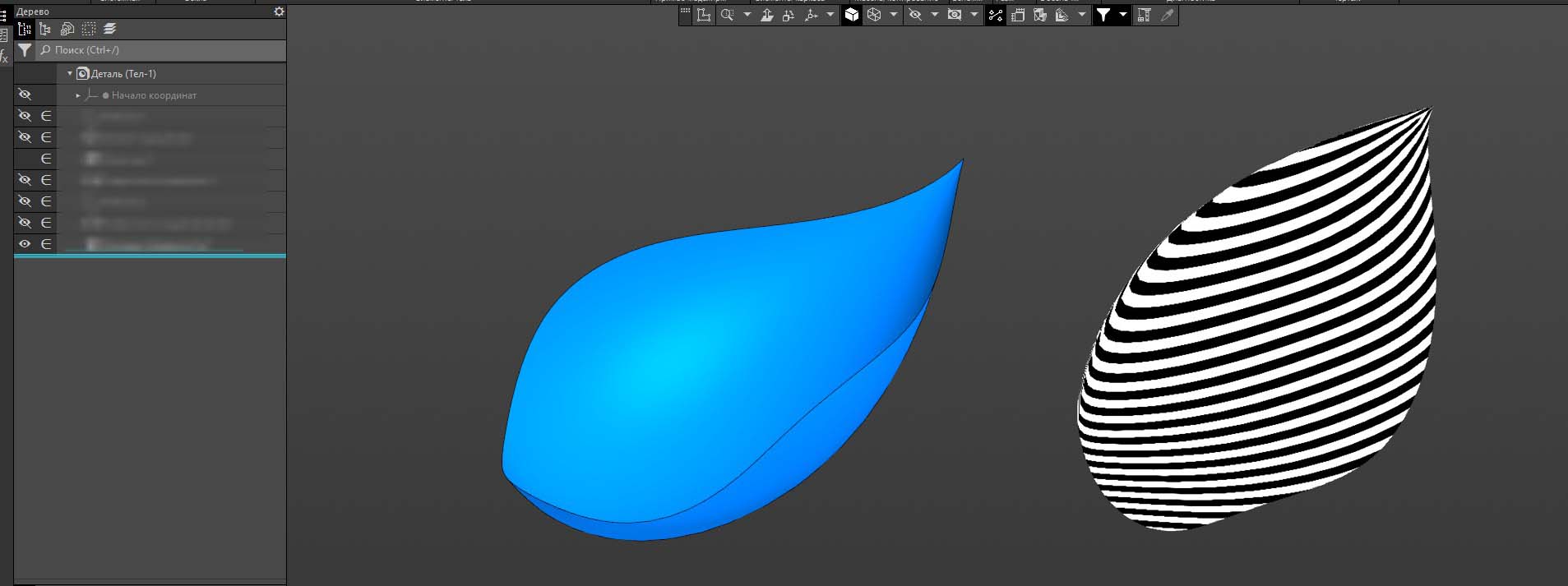 Понятно, что есть другие методы построения формы подобной ложке (есть даже ролики в интернете). Но форма там получается не совсем та, что необходимо. Нужно явное задание геометрии границ.
