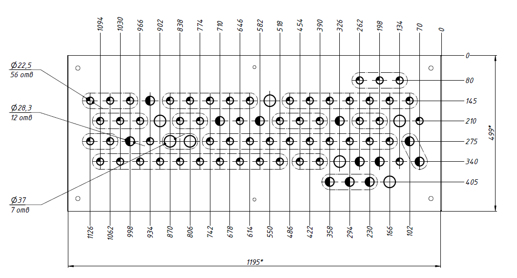 разделил отверстия по категориям, и просто на одно отверстие поставил размер и кол-во. начальник принял