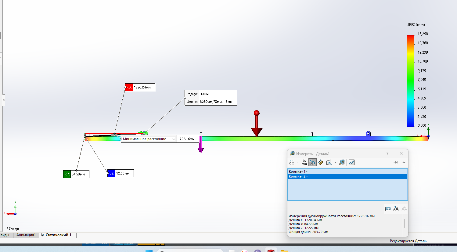 результат. Здесь не сказать, что нулевые напряжения по длине проушины, но такая же проблема. А если всё таки проблема в этом, не подскажите как можно связать проушины по всему периметру? при моделировании балки использовал как сварные детали, проушины- как твердые тела через эскиз к стенкам балок