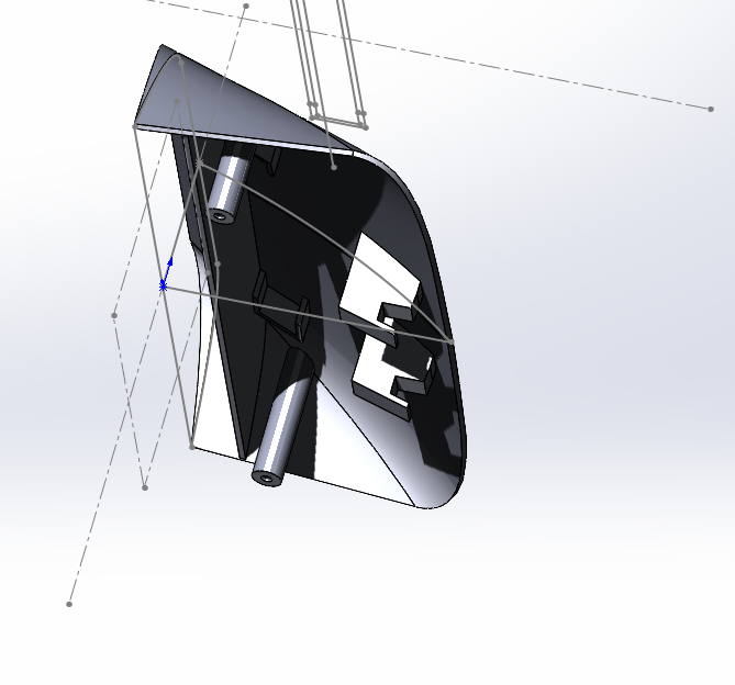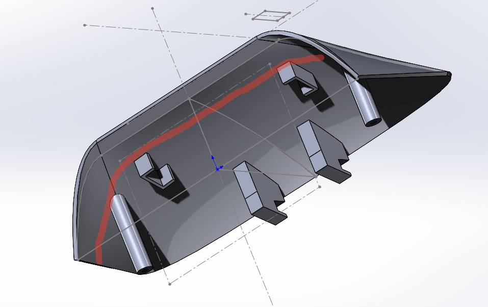 не могу с новой плоскости продлить перегородку от плокостей козырька вниз, потому что там 4 плоскости, солид говорит фиг там, да даже от одной не дает оттолкнуться ни бобышкой ни плоскостью