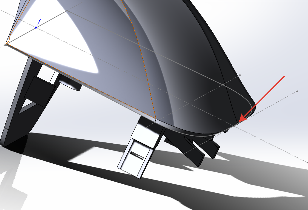 Модель в этом месте не бьет , надо скажем так сместить эту точку - "нарастить козырек" назад на мм 3 и вверх на мм 3. Именно это часть торпеды скажем так не на плоскости и выше