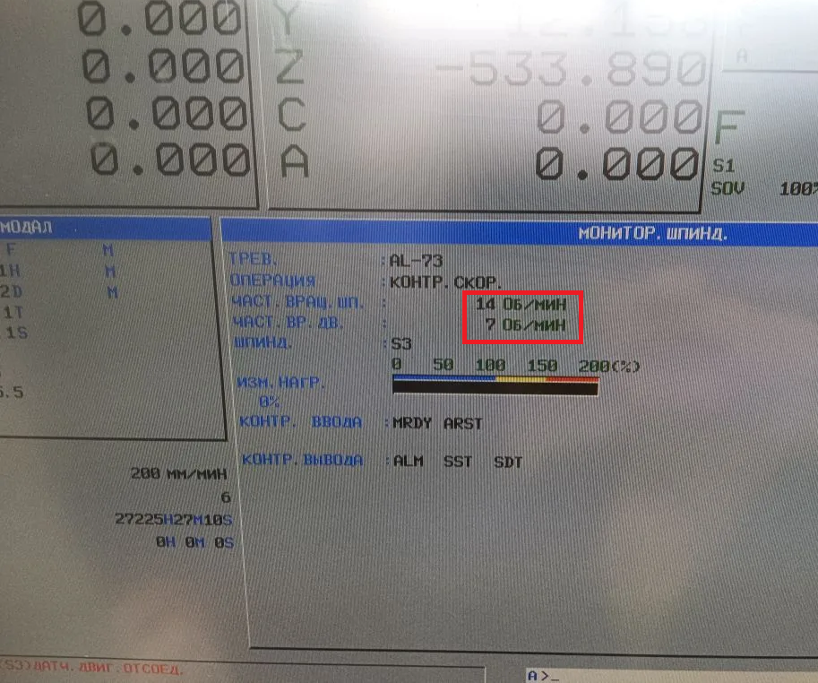 Интересно то что показывает на мониторе разные скорости шпинделя и мотора .